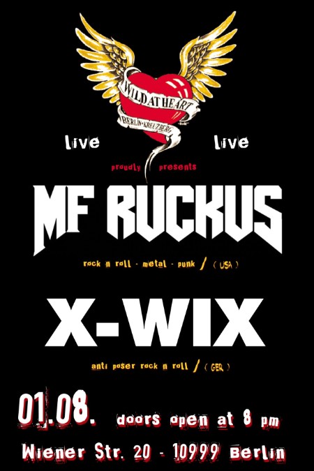 Also, wenn DAS mal net FETT ist : am 01.08. werden wir gemeinsam mit MF RUCKUS aus Denver, Colorado - das Wild At Heart in Berlin rocken ! HA ! Cheers !